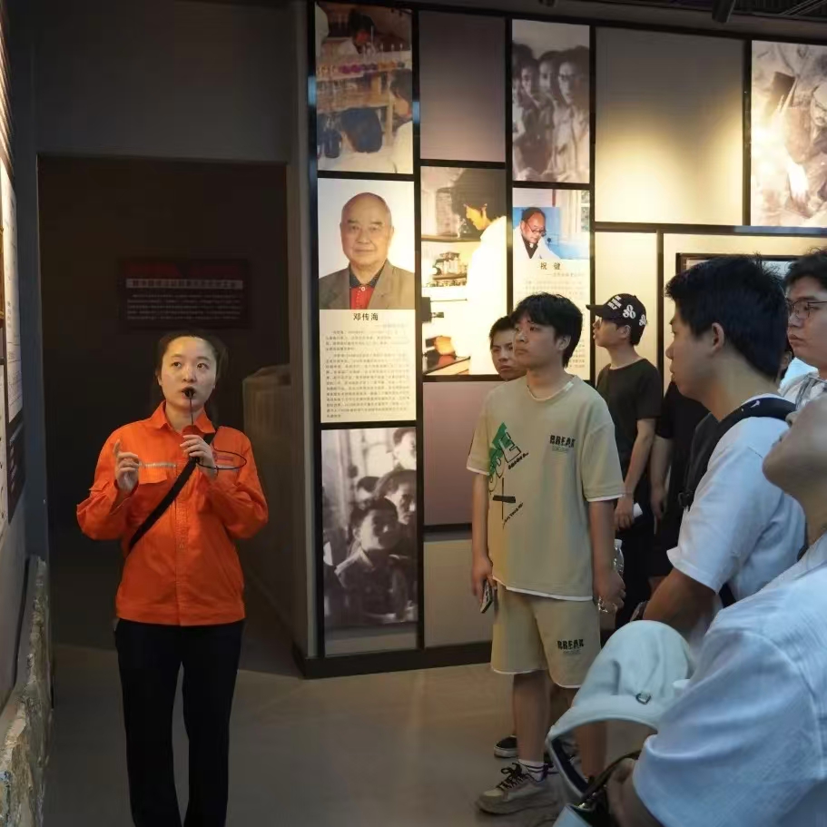 学员们跟随讲解员深入展区,通过上世纪60年代的化工生产设备、手稿图纸及复原的“三线人”生活场景,深刻体会老一辈建设者“艰苦创业、无私奉献、团结协作、勇于创新”的精神。在数字化展陈区,学员们通过互动屏幕与历史影像,直观感受三线建设对国家安全和工业发展的战略意义。化学与制药工程学院学生叶兴杰表示:“这些展品不仅是工业记忆的载体,更是激励我们接续奋斗的精神火炬。”