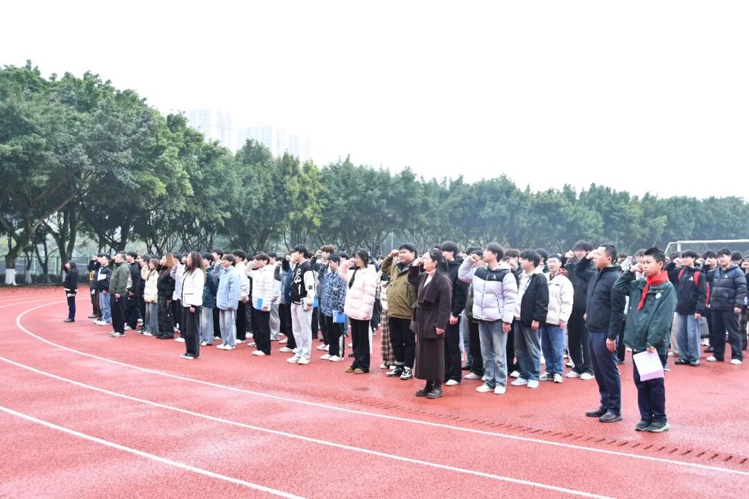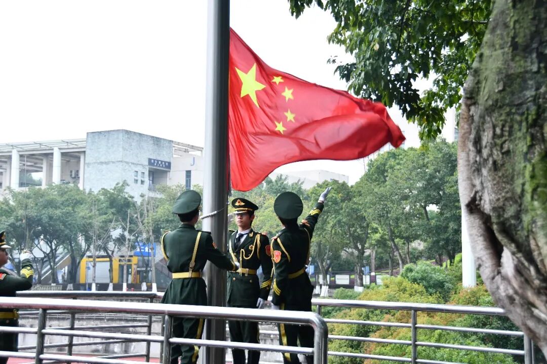 清晨的足球场庄严肃穆,国旗护卫队队员身着整齐制服,精神抖擞、步伐铿锵,迈着坚定有力的步伐护送五星红旗缓缓入场,每一步都彰显着青年学子的昂扬风貌。伴随着雄壮激昂的《义勇军进行曲》,鲜艳的五星红旗冉冉升起、迎风飘扬,全体师生肃立致敬,行注目礼,歌声嘹亮、神情肃穆,心中涌动着炽热的爱国情怀与沉甸甸的使命担当。