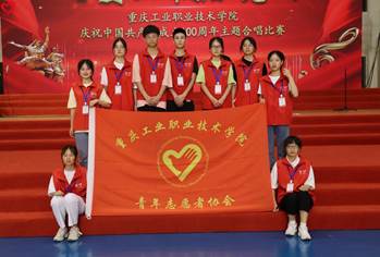 在建党百年华诞的伟大历史时刻来临之际,重庆工业职业技术学院为回顾党的光辉历程,讴歌党的丰功伟绩,弘扬党的光荣传统与优秀作风,特于2021年6月29日在体育馆举办了“唱支山歌给党听”主题合唱比赛活动。活动中,颜欣带领身穿红马甲的志愿者们有条不紊的根据分工坚守各自岗位,用心提供服务。分发党旗,摆放物资,引领到场嘉宾,维护现场秩序。红色的身影散布在场内的各个角落,明媚的微笑洋溢在每个志愿者的面容。